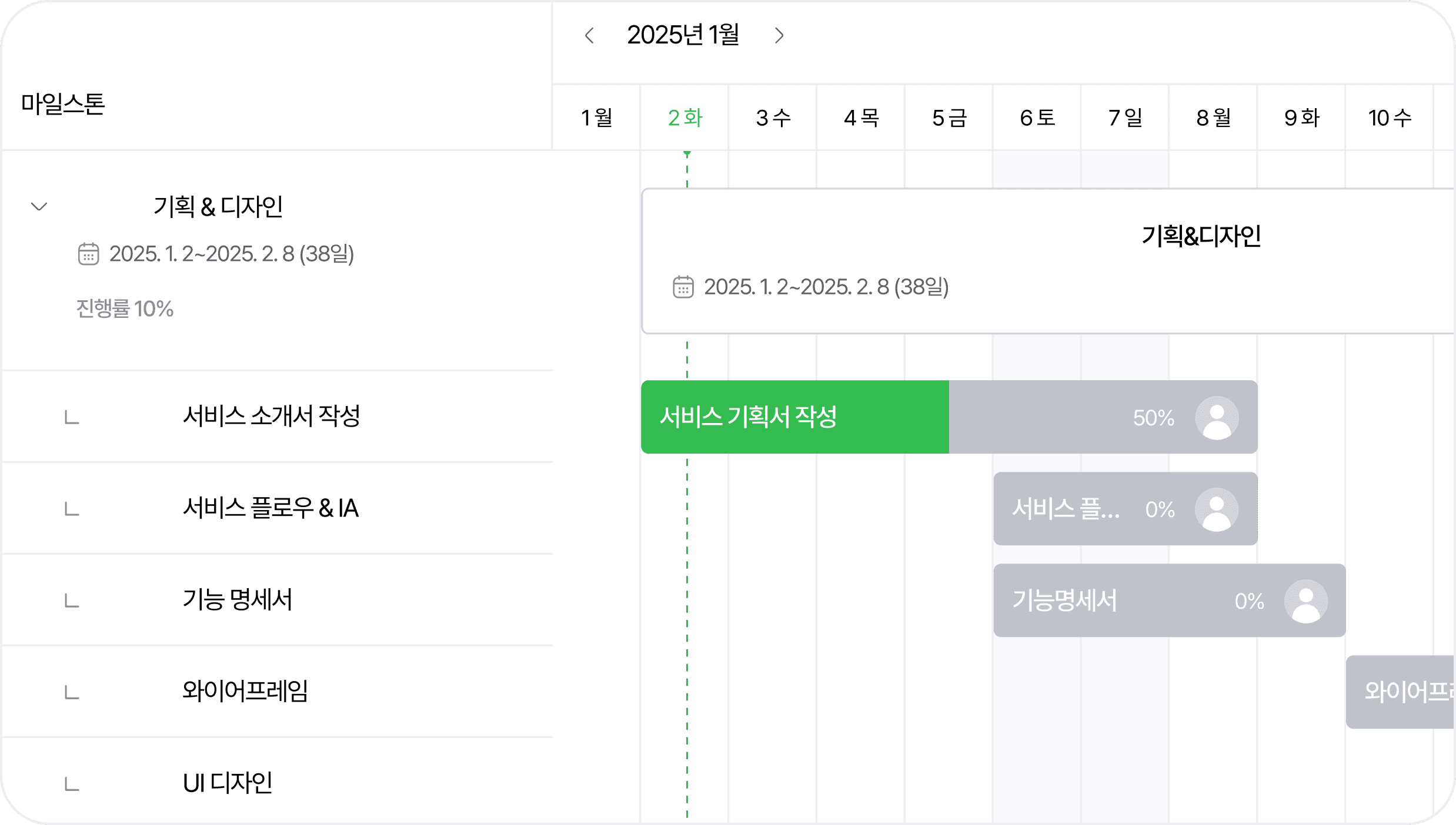 ✅ 작업·마일스톤 단위로 현재 상태 시각화